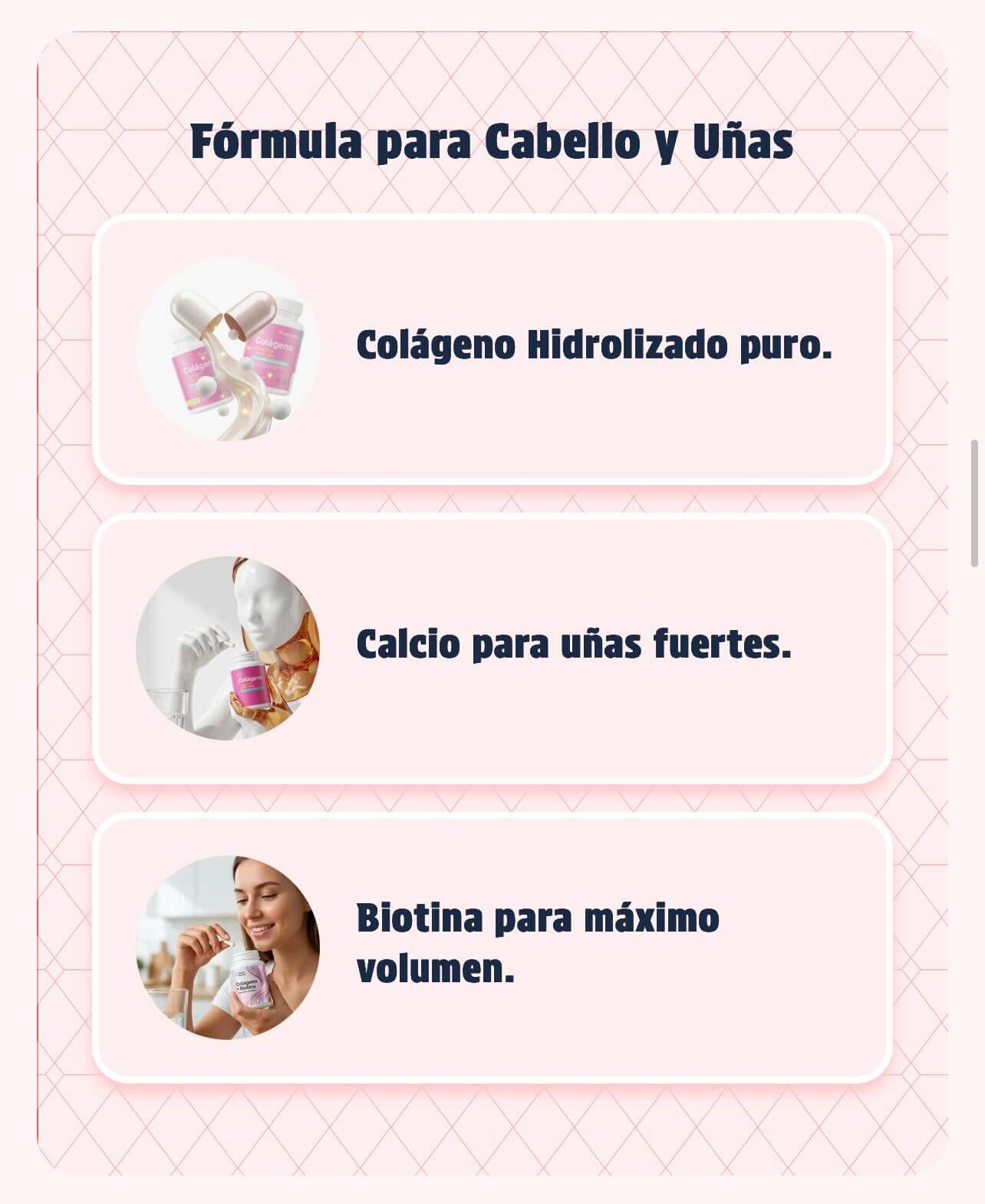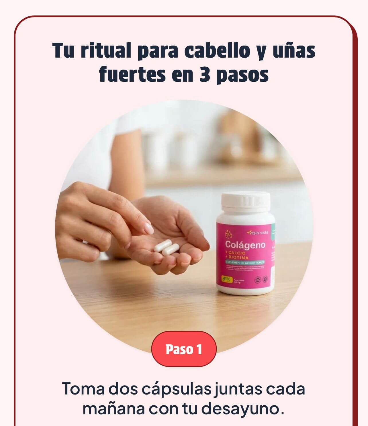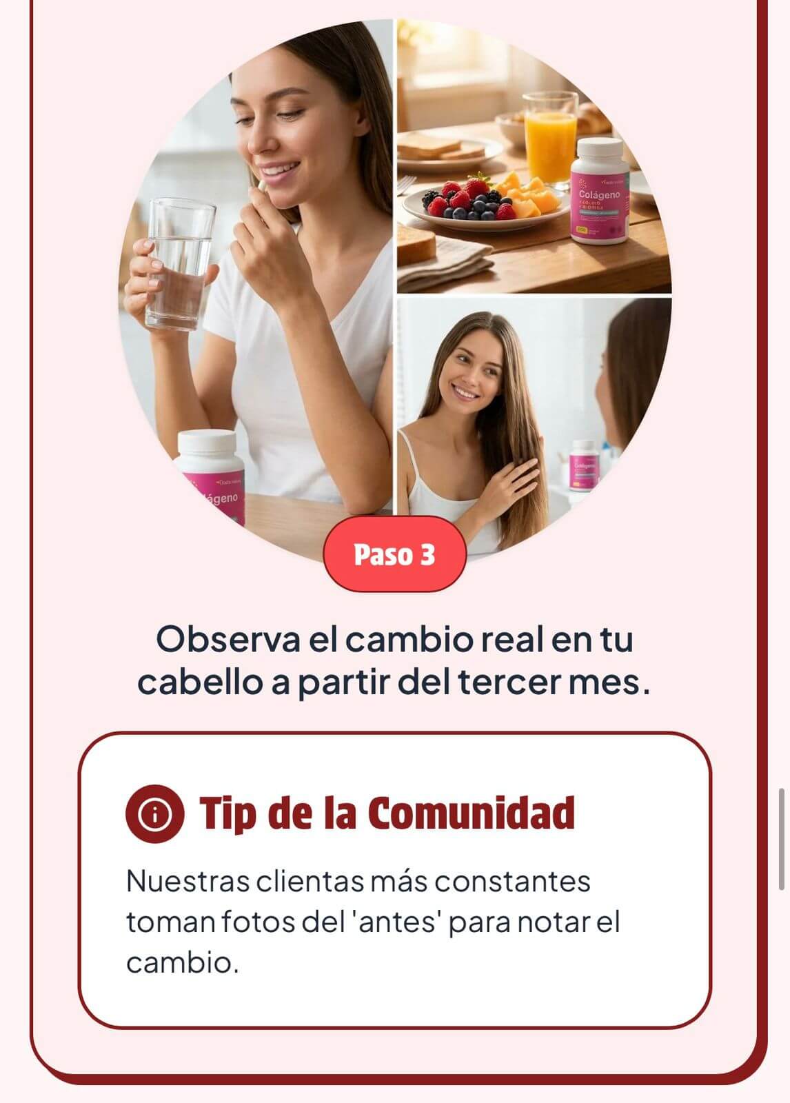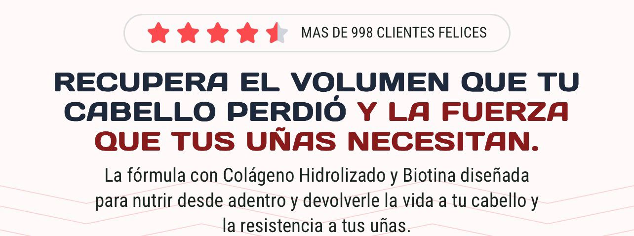 Verás uñas más fuertes en semanas. La menor caída del cabello y el nuevo crecimiento son notables a partir del segundo mes de constancia.